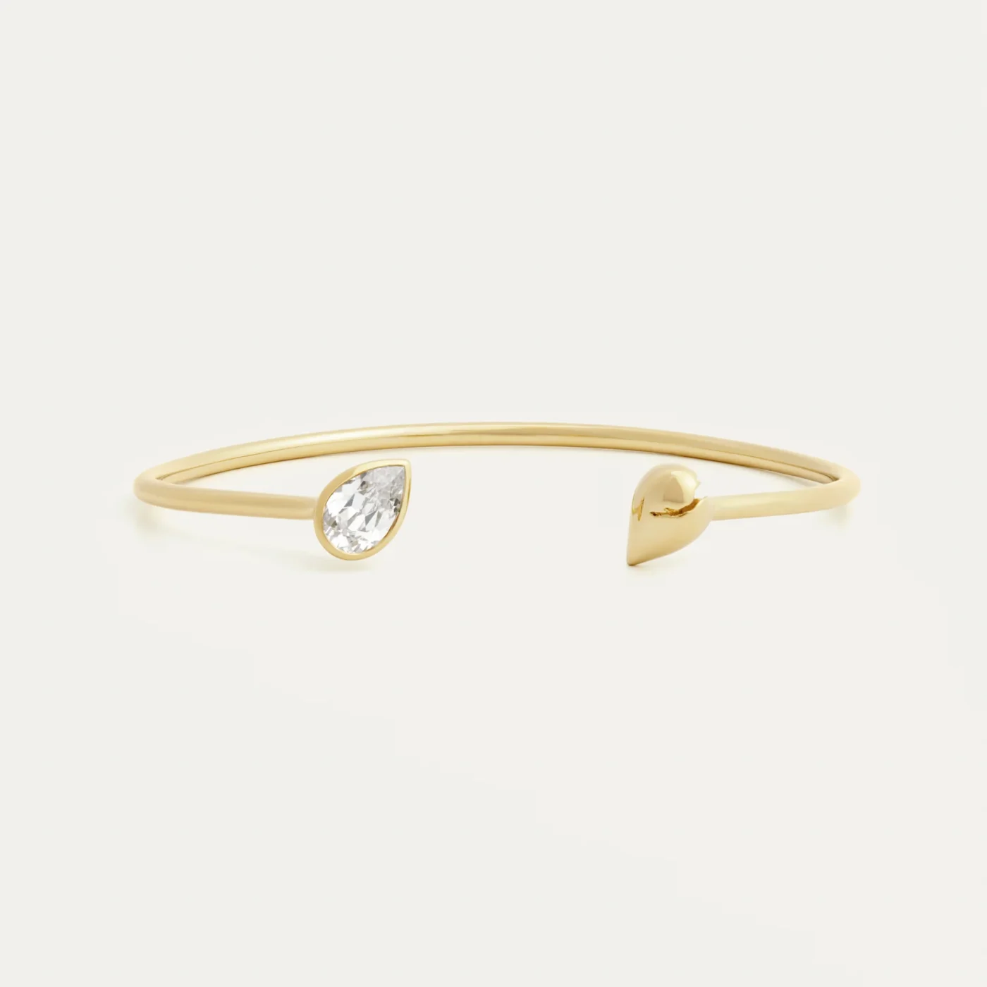 Crafted from 100% recycled 14k gold, this bracelet exudes modern elegance with a nod to sustainability. One end of the sleek, open design is adorned with a brilliant pear-shaped lab-grown diamond, ethically sourced and hand-selected for its superior sparkle. The other end features a 14k gold pear-shaped station. Perfect for everyday wear or special occasions, this bracelet makes a sophisticated statement—embracing both luxury and sustainability in every detail.