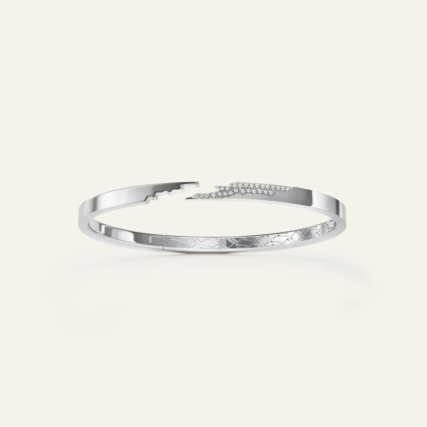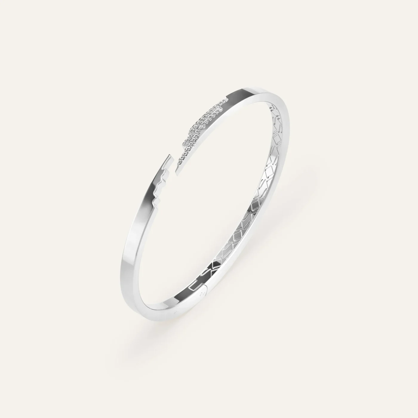 Signature Broken Narrow Cuff Bracelet with Pavé Diamonds White Gold SF23CORE-B-002-PV-S-WG