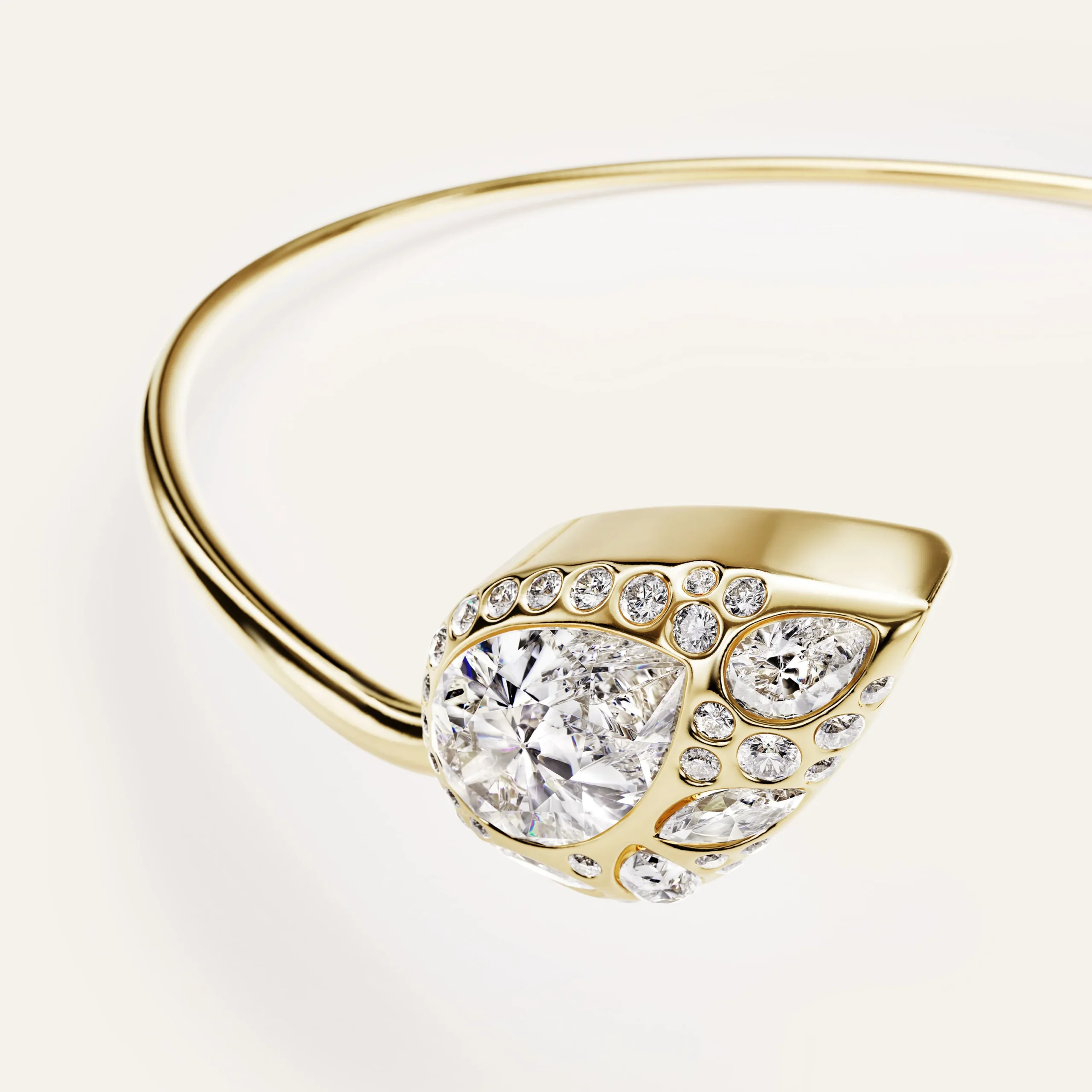 Surrounding the emerald, a delicate halo of pave-set diamonds adds a touch of glamour and brilliance to the design. The diamond-studded band gracefully complements the centerpiece, creating a harmonious balance of elegance and modern style.